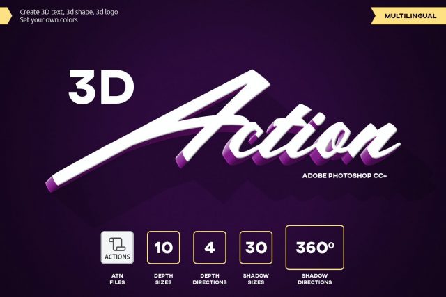 3D Action for Photoshop CC and newer. WORKS ANY LANGUAGE. Just one click!