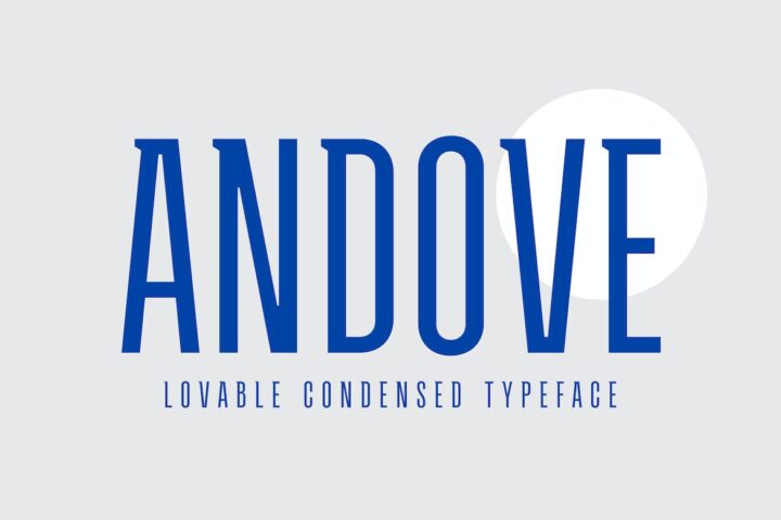 Andove is a narrow sans font with very tight compression. With a slim character and a fairly large x-height, Andove looks great for very large and eye-catching typesettings.