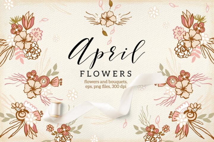 April Flowers – png and eps files. Ideal hand painted cliparts graphic for DIY projects, invitations, cards, wedding invitations, greeting cards, logos, cases, print design, branding, packaging, posters, wallart, blogs, website, adverstising and more.