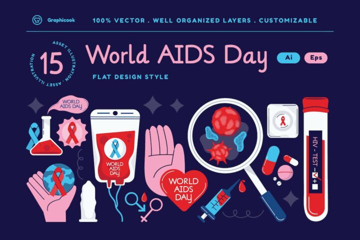 Blue Flat Design World AIDS Day Illustrations is an illustration that is excellent for you to create your own scene composition for your upcoming website, apps, landing pages, and presentation page clipart/illustration projects.