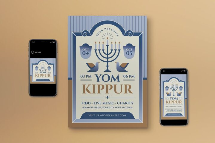 Blue Gradient Flat Design Yom Kippur Flyer Set