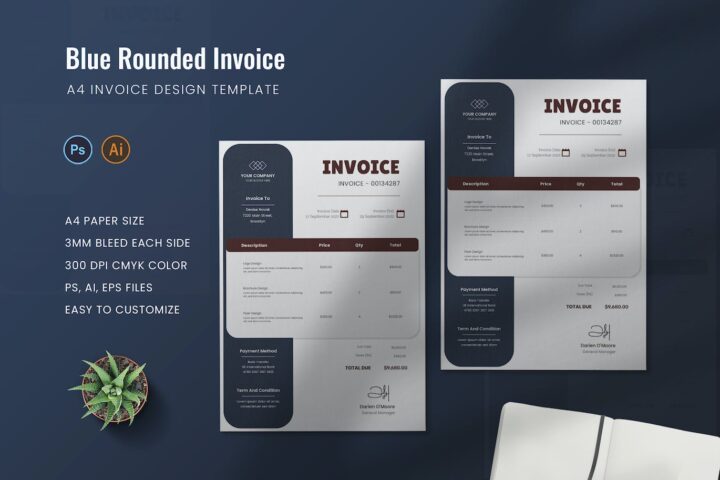 Blue, Rounded, Invoice, Payment, Bill, Corporate, Company, Business, Print, Modern, Simple, Shop, Doc, Cmyk, Receipt,