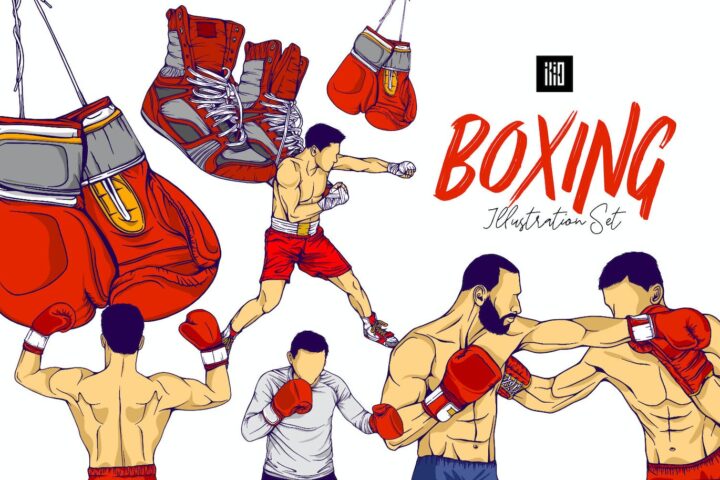 Boxing Illustration Set Line Art