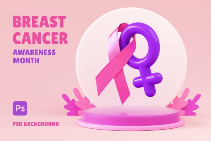 Breast, Cancer, Pink, Ribbon, Female, Symbol, Background, 3d, Illustration, Design, Template, Awareness, Month, Banner, Poster,