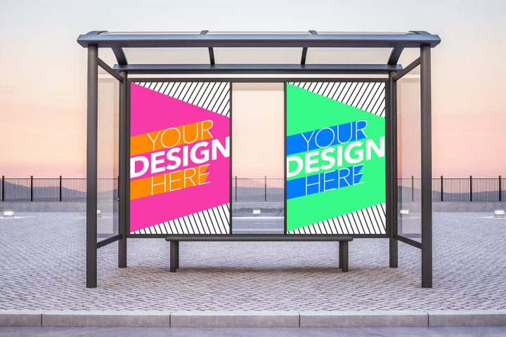 Bus stop with two advertisements mockup
