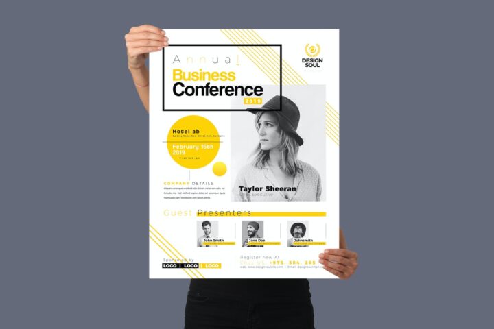 Business Conference Flyer Template can be used for any Type of business like home or corporate uses, it’s 100% highly optimized for best print quality. easily changeable colours and text.