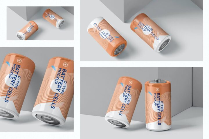 These C battery cell mockups will help you make the best presentations of your battery branding designs. The smart object feature of these mockups allows you to change the design with a single click plus you can also use its well-named layers for the customizations of shadows, effects and the background as well.