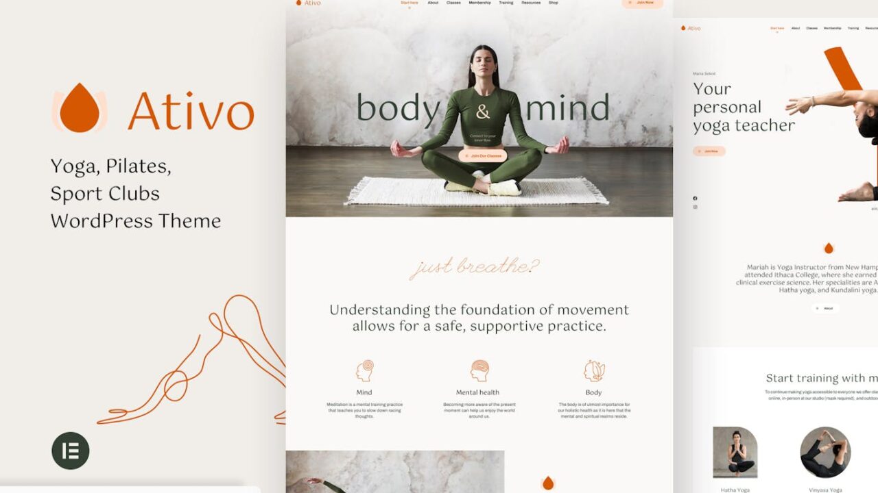 Ativo – Yoga Sport Fitness Pilates Club WordPress