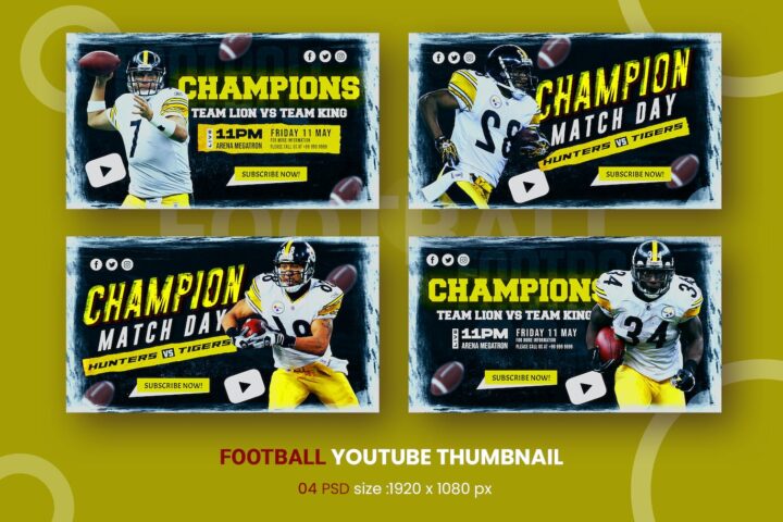 Champions Football Youtube Thumbnail Template will make it easy for you to create your own awesome-looking banners in just a few minutes.