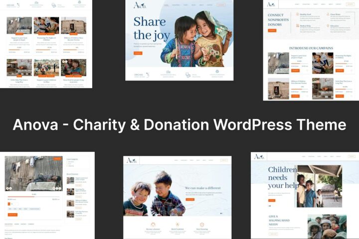 Anova – Charity & Donation is a clean, modern, creative, unique WordPress Theme for charity, fundraising, nonprofit, NGO, donations, church, Mosque, and all other non-profit charity websites, businesses, and NGO. With this Anova template, you can easily change texts, content, Image, objects and color. This is an amazing WordPress Theme to help you start and improve your business. With this template, users will love your website because it gives them an unique and interesting experience.