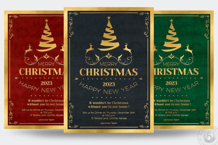 Christmas, Invitation, Flyer, Poster, Template, Design, Black, Red, Green, Gold, Party, Eve, Night, Celebration, Xmas,