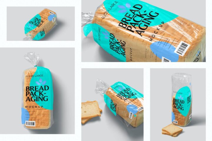 Present your bread packaging and branding designs on a transparent plastic bag using these clear sliced bread packaging mockups. These mockups offer smart object option to replace the design with a single click. You can easily change the light effects, shadows and background using intelligent layers.