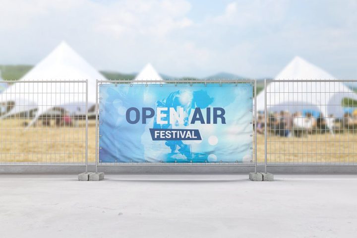 Banner, Stand, Mockup, Barrier, Fence, Construction, Showcase, 3d, Realism, Advertising, Outdoor, Street, Road,