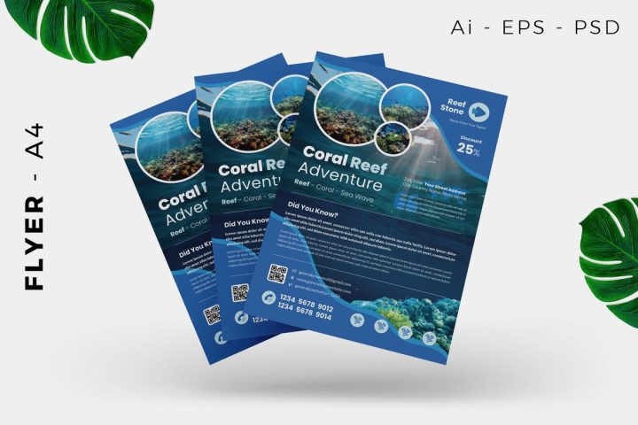 Coral Reef Flyer Design. Fresh and elegant and modern design for a flyer. This template is completely editable to suit your brands colors and corporate fonts.