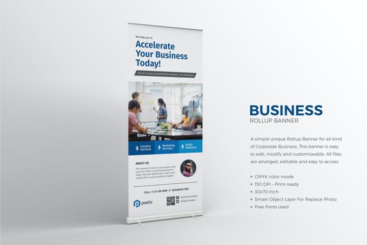 A simple unique Rollup Banner for companies to promote, market or advertise their upcoming events. This banner is easy to edit, modify and customizeable. All files are arranged, editable and easy to access.
