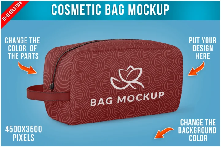 Cosmetic Bag Mockup helps you to apply your amazing designs. Are made in such a way that you can easily add your artwork using the provided layers, precise masks and special smart objects.