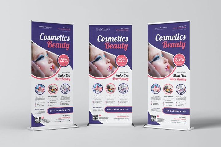 Cosmetics Roll-up Banner Template for cosmetics banner. Best for product display and information inside or outside your store, or on the event display information.