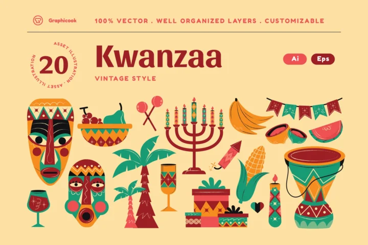 Cream Vintage Kwanzaa Illustrations is an illustration that is excellent for you to create your own scene composition for your upcoming website, apps, landing pages, and presentation page clipart/illustration projects.