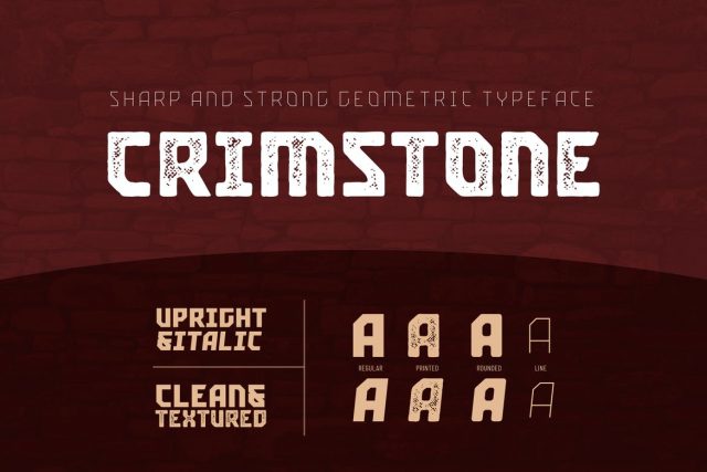 Not only the clean version, Crimstone is also available in a printed version with a rough and textured appearance. Each has an upright and slanted version.