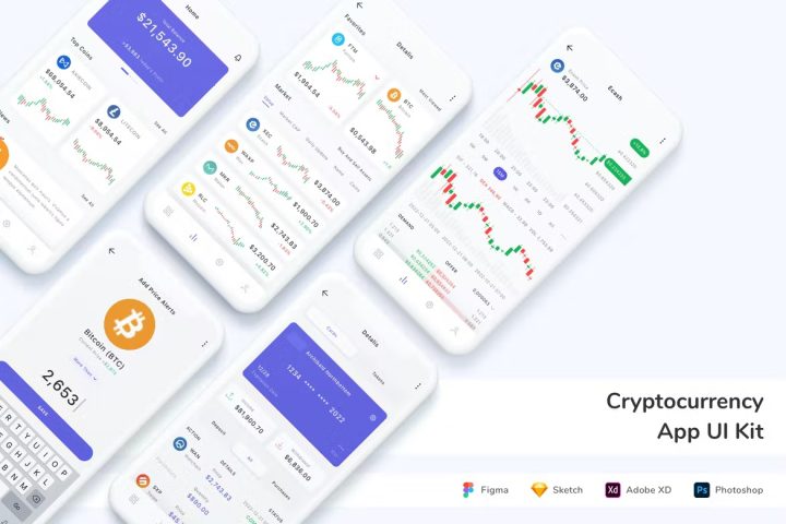 Cryptocurrency App UI Kit is designed with modern design trends.