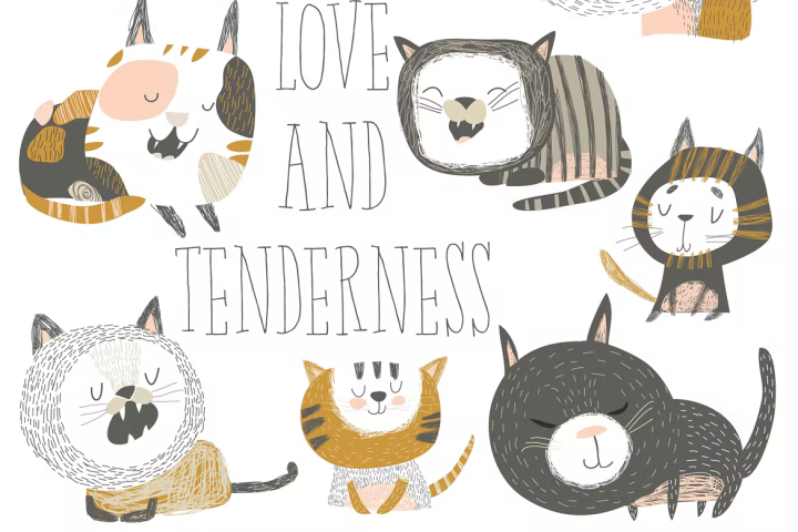Cat, Set, Isolated ,Kitten, Pet, Meow, Tenderness ,Feline, Kitty, Illustration ,Animal ,Symbol, Vector ,Cartoon ,Icon ,gfx