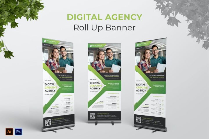 This Roll Up Banner template has fully editable and customizable PSD and AI files. This Roll Up Banner template also has creative style, and it’s suitable for your any purpose such as: businesses, corporate, agency and can be also used for any other publishing like marketing promotions and company profile.