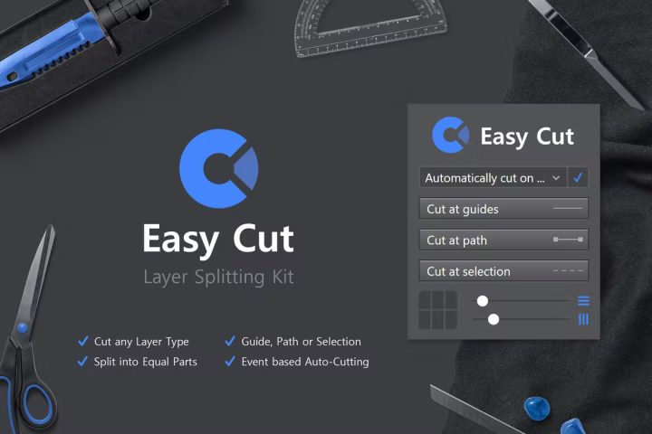 Easy, Cut, Extension ,Photoshop, Addon, Separate, Layers, Shapes, Cutting, Split, Splitting, Path, Vector, Trim, Cutout, gfx