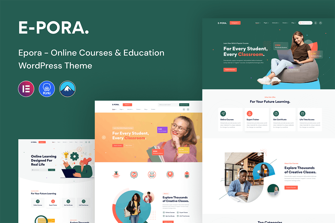Epora is a minimal and contemporary WordPress theme that has been perfectly crafted for education centres of all kinds. Designed with your School, College, University or Training Center in mind, this ultimate education WordPress theme includes everything you need for a complete online education centre and LMS. Epora uses Tutor, the most popular WordPress LMS plugin because it’s packed full of great features for your education centre, online courses or tutorial website, but it’s also super easy to use. With Tutor LMS, you can include your curriculum, courses, lessons, quizzes, payment integration, and loads more…