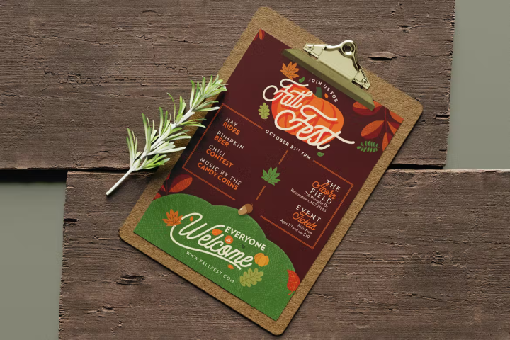Celebrate with a terrific fall festival flyer that your community will love. This design features beautiful autumn-inspired graphics, a deep orange and brown color palette, and plenty of space for all your event details. The flyer is fully editable in Adobe InDesign, so you can customize it to suit any fall event.