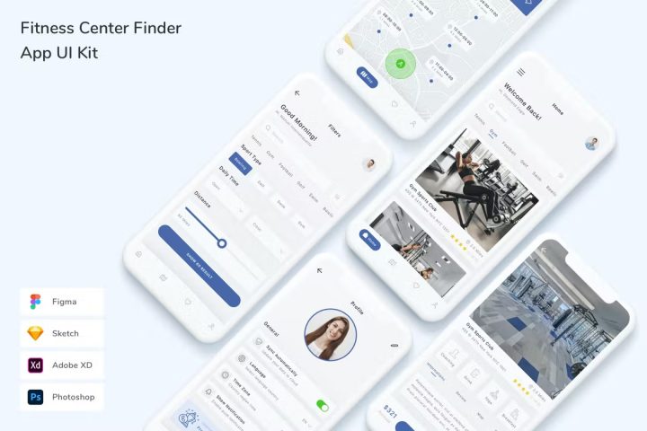 Fitness Center Finder App UI Kit is designed with modern design trends.