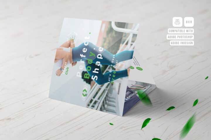 Brochure, Advertising, Body, Fitness, Gym, Health, Muscle, Sport, Fold, Fresh, Multipurpose, Trifold, Psd, Indesign, Square,