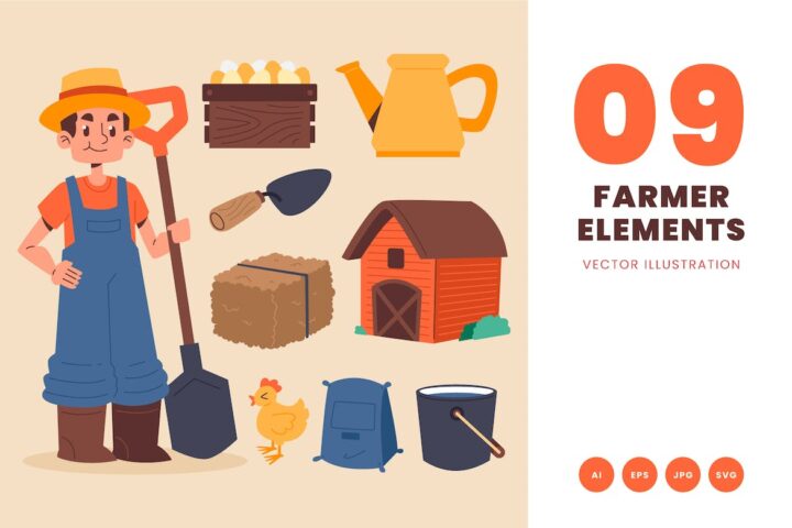 Flat Farmer Element Illustration . You can creatively edit and use this illustration set on merchandise, logo, sticker, patches, badge, and many more.
