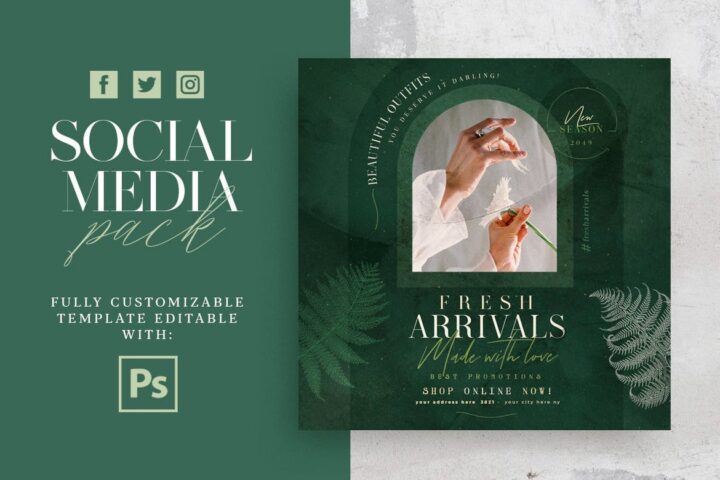 Fresh Arrivals Social Media Pack Perfect for the promotion of Shops, Boutiques, Fashion Shows, Events, Birthday, Festivals, Invitations, Clubs, Concerts, Parties, Musicals, Theaters, or Whatever you Want!.