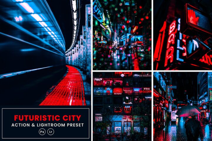 This Futuristic City Action & Lightrom Presets is designed to create a catchy and sharp look that stands out from the rest, creating a unique smooth style, focusing on different shades.