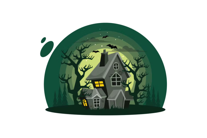 Haunted, House, Halloween, Cartoon ,Style, Vector ,Illustration ,Dark ,Night, Spooky, Horror ,Ghost, Mystery ,Home, Scary, gfx