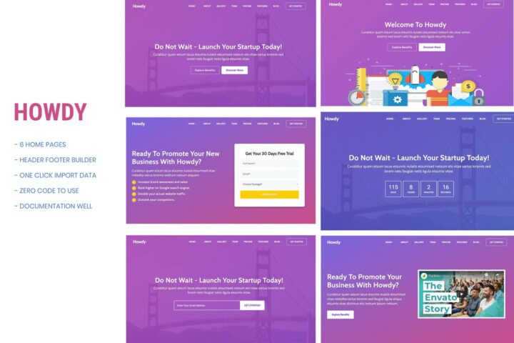 Howdy – Multipurpose High-Converting Landing Page WordPress Theme is a clean and modern high-converting landing page template, very easy to customize according to your needs. This landing page template can be used to promote web apps, mobile apps and all kind of marketing and startup websites. Quick and easy to setup. \