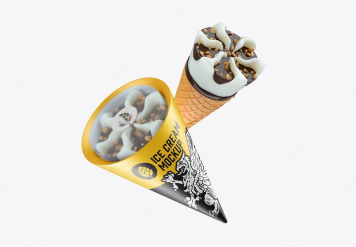 Create a professional photo-realistic presentation of ice cream package, logo design or label design using this Ice Cream plastic container Mockup.
