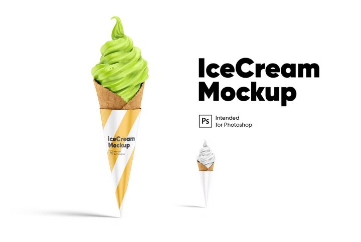 Create an elegant presentation for your designs with this fully customizable Ice Cream Mockup. Includes smart-objects and masks, allowing you easily add your design and lets you change the color for most scene objects