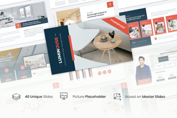 Luminouse – Furniture and Interior Design PowerPoint Template is a powerpoint template that can be used for any type of presentation: Selling or Renting Real Estate Agent, Agency Residential & Commercial Developer, Vacation Rental, Apartment Manager, Villa, Realtor, Single Property, Pitch-deck, Digital Marketing, Creative Agent, Creative Studio, Branding and also can be used for Personal Portfolio.