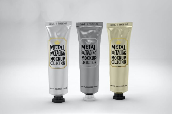 Metal Squeeze Tubes Packaging Mockup* (version 4.0) — Metal packaging with an option to show matte or foil tubes