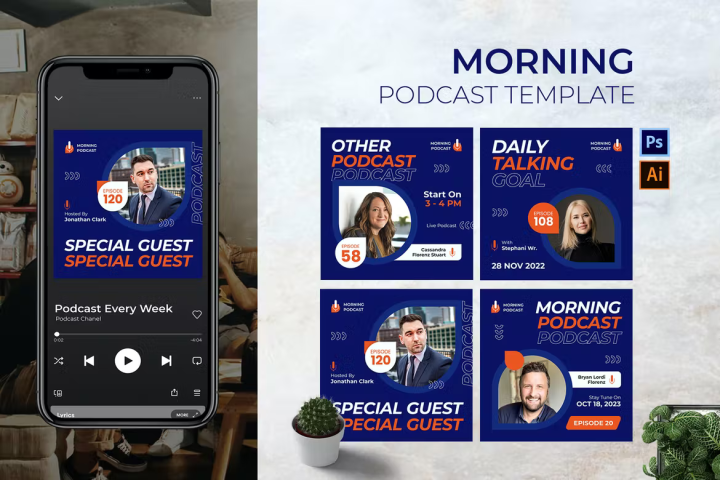 This Podcast Cover template has fully editable and customizable PSD and AI files. This Podcast Cover template also has creative style, and it’s suitable for your any purpose such as: podcast, radio, show and can be also used for any other publishing like marketing promotions and company profile.