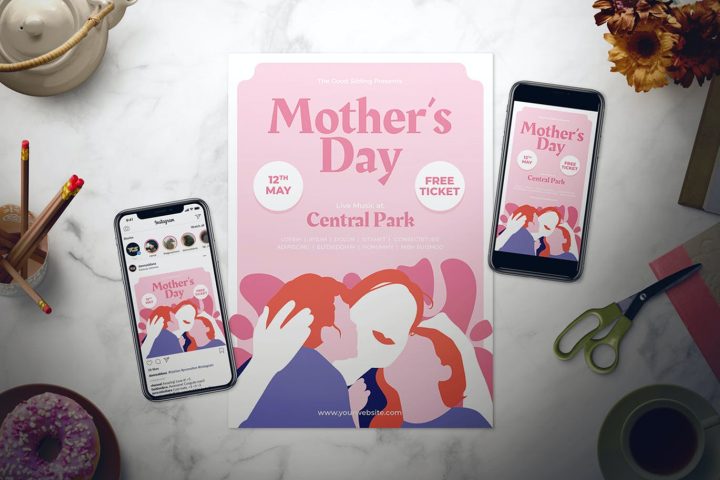 Mothers, Mother, Day, Flyer, Poster, Pink, Kids, Children, Mommy, Mom, Illustration, Photo, Instagram, Family, Happy,