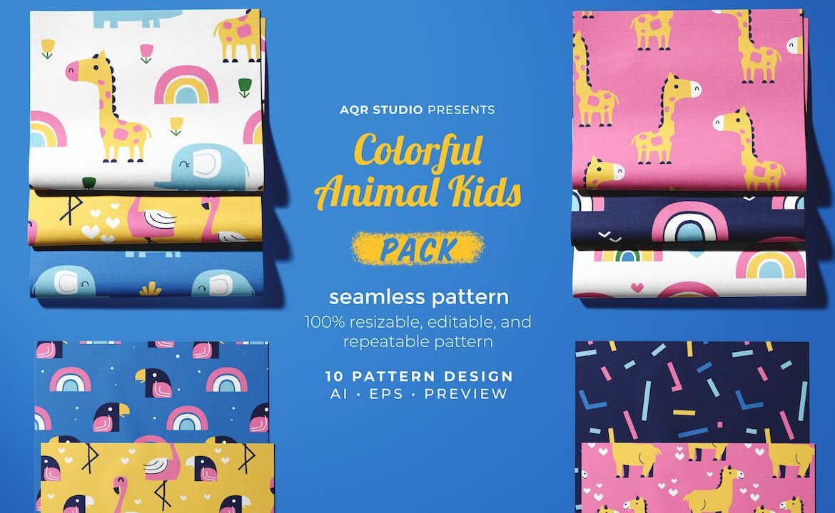 Colorful Animal Kids – Seamless Pattern