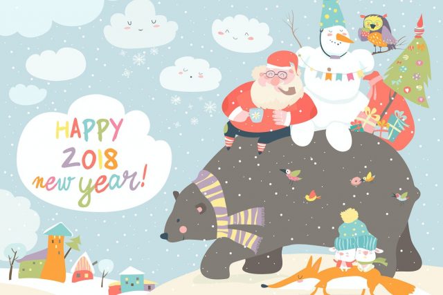 Santa Claus with snowman riding
