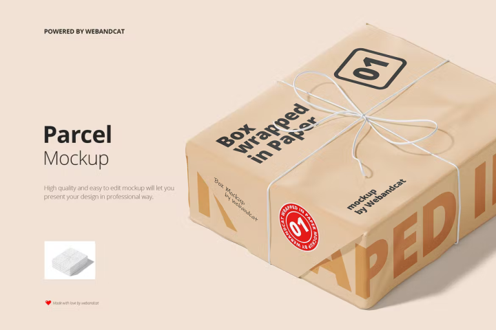 Parcel, Box ,Mockup ,Mailing ,Kraft ,Carton ,Paper ,Shipping, Packet, Packaging ,Wrap ,Cardboard, Gift, Webandcat, Post, gfx