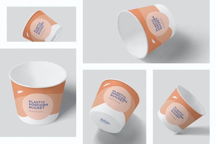 Create most effective display of your branding designs using these plastic round popcorn basket mockups. These mockups have separate design and color option for the inner, outer and bottom side design. You can easily customize the design, color, shadows and background using smart object option and well-named layers.