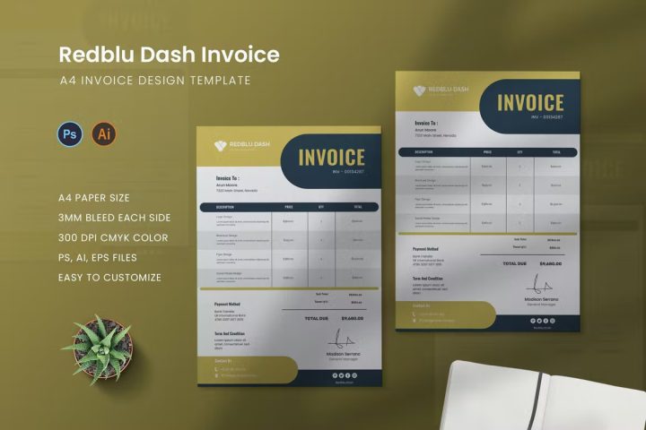 Invoice, Template, Payment, Bill, Corporate, Company, Business, Print, Layout, Modern, Simple, Shop, Doc, Cmyk, Receipt, gfx