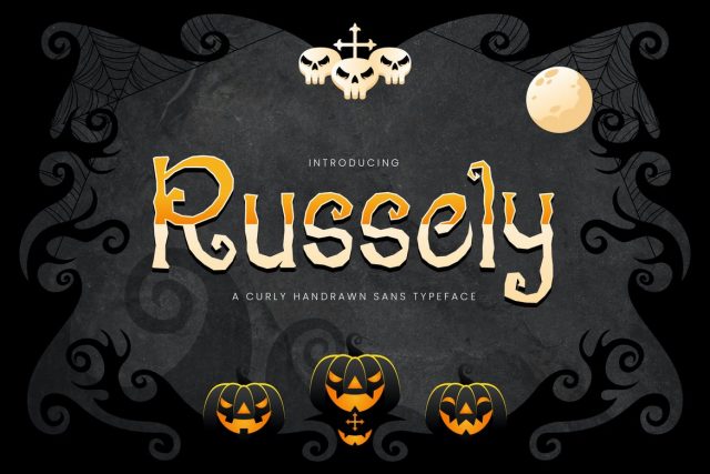 Are you looking for a cute handrawn font for children and halloween event? We can help! Try to download our Russely Curly Handrawn font. The font is suitable to use for casual purpose especially children related occasion and halloween