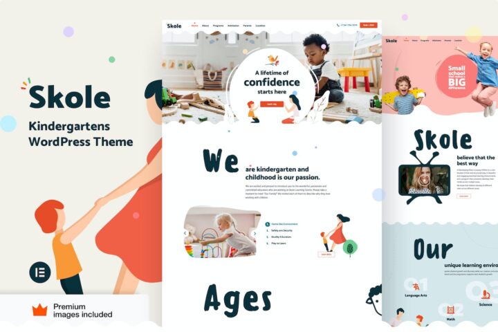 Skole is a WordPress Elementor Theme ideal for Kindergarten and Preschool, Child Care Centers, Play Schools, Nurseries, Day Care Centers, Art & Craft Training Institutes, and other Education and Children related websites. Skole is a visually impressive, amusing, vibrant, and feature-rich Theme. Users with zero programming skills and advanced developers can utilize it pretty well.