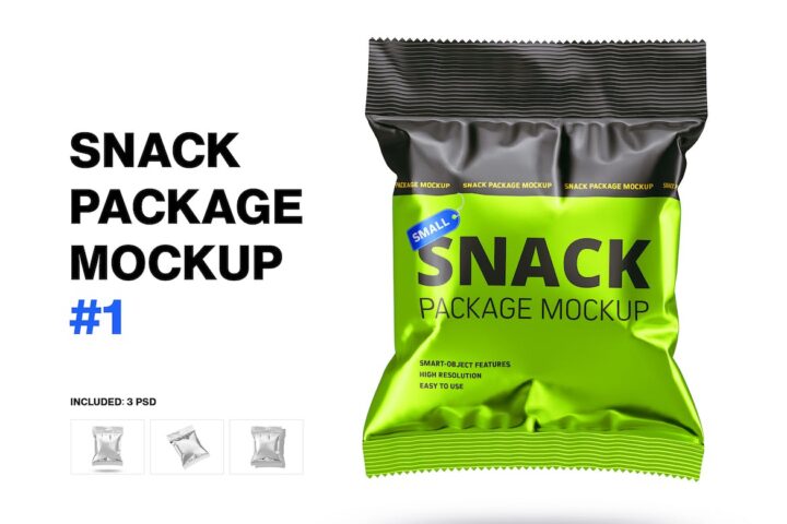 Set of 3 photorealistic and easy to edit Small Snack Package Mockup’s for Photoshop.